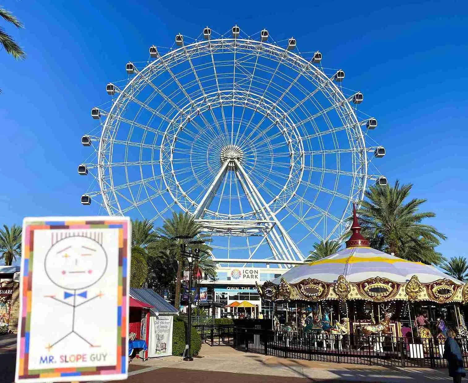 Mr. Slope Guy enjoying a sunny day at the Orlando Eye—showing that circles aren’t just classroom formulas, they’re towering wheels of fun and math in motion!