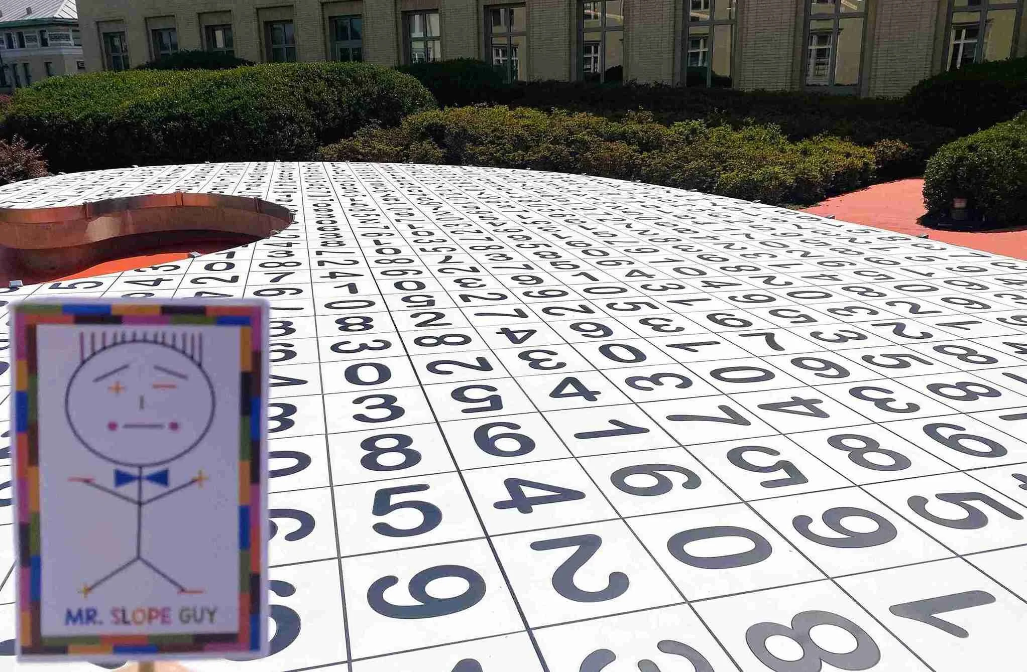 Mr. Slope Guy exploring the “Garden for Math Nerds” in Pittsburgh, Pennsylvania — surrounded by a sea of numbers, proving that in math, growth comes from data, not dirt!
