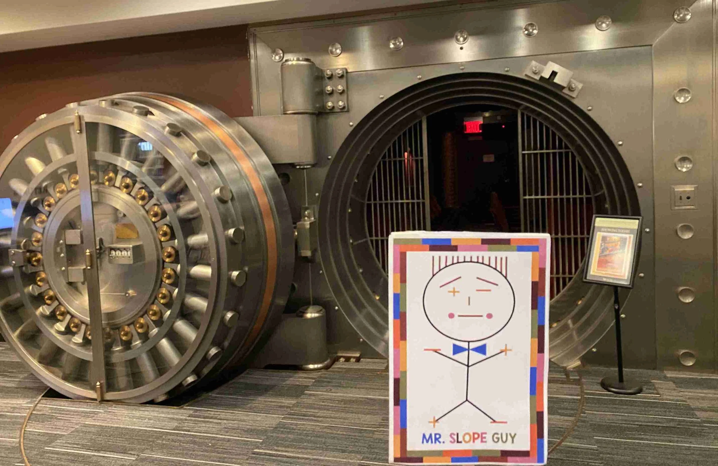 Mr. Slope Guy stands in front of a not so secret bank vault buried beneath a library in Kansas City, MO—because where better to talk about compound interest than inside a vault? 💰📚 Just like this awesome spot, the power of interest grows quietly over time.